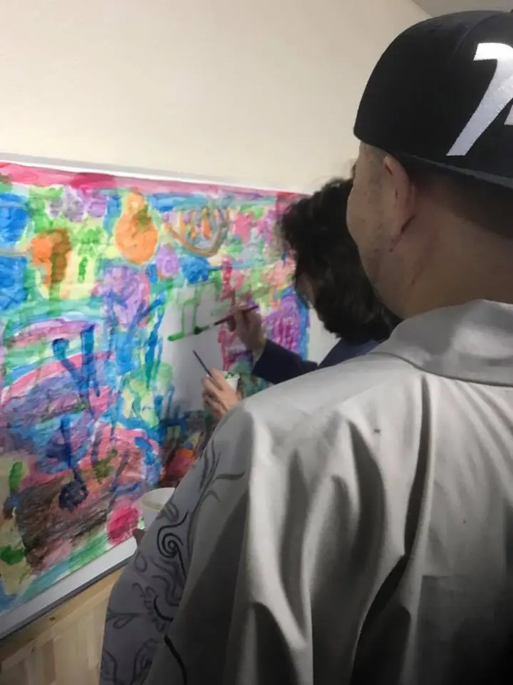 この絵は後ほど完成させリハビリランドさん(施設)に寄贈する予定です。