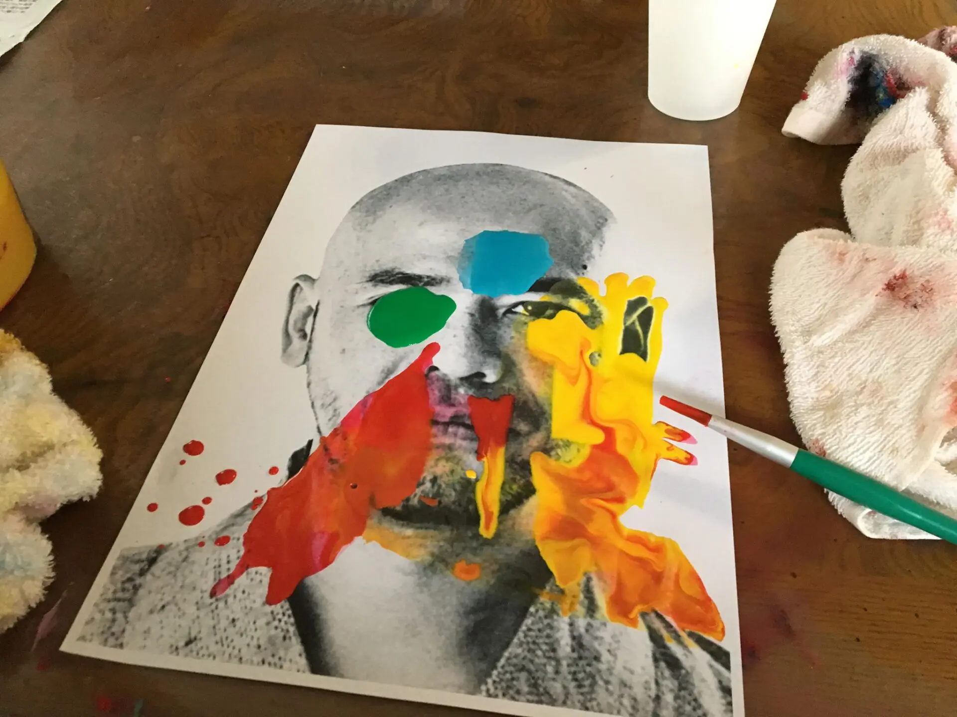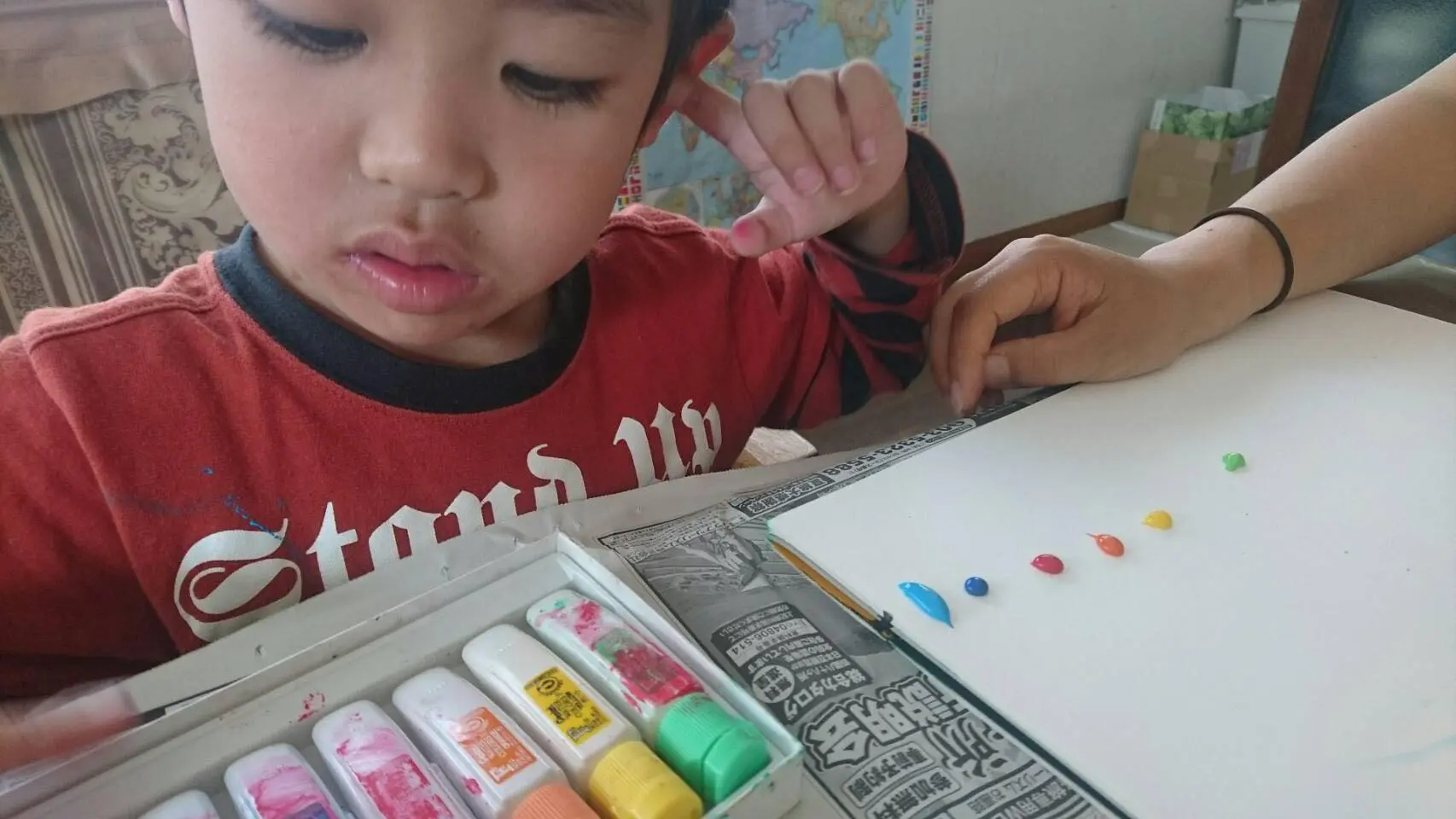 紙に絵の具を直接出して…