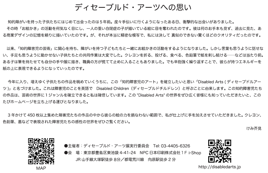 この絵はディセーブルドアーツの象徴として展示会場の入り口に飾っておきます