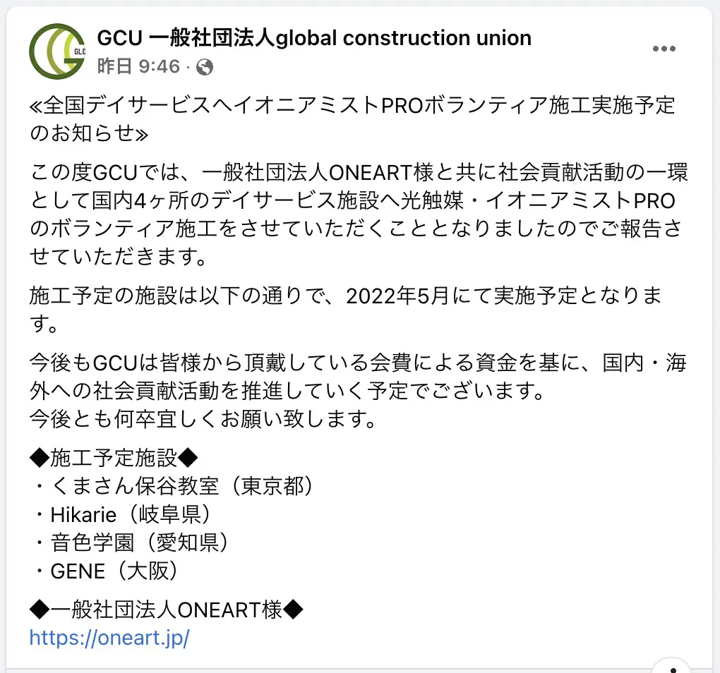 「全国デイサービスへイオニアミストPROボランティア施工実施」