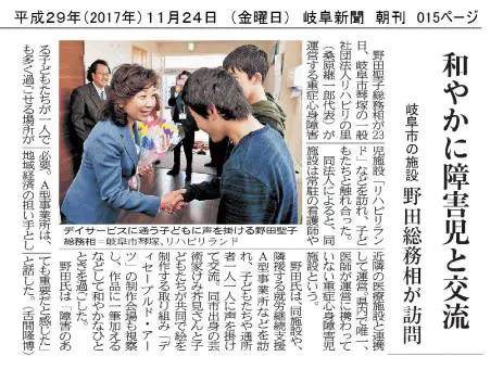 11月24日に岐阜の施設リハビリランドさんにて、野田聖子総務大臣と一緒にお絵描きしました。