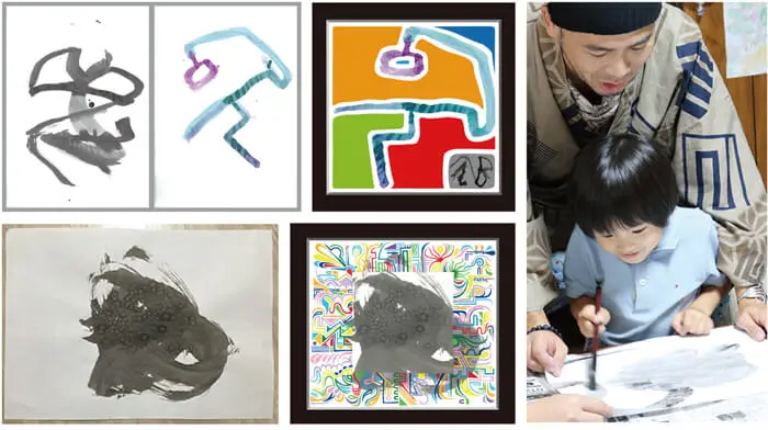 今回は、けみとのコラボ作品を展示。通常の健常者とはまったく異なる感性で制作された作品の数々。「障がい児の可能性」や「人間の脳の可能性」を想起させると同時に、アートのエネルギーを感じることができる。