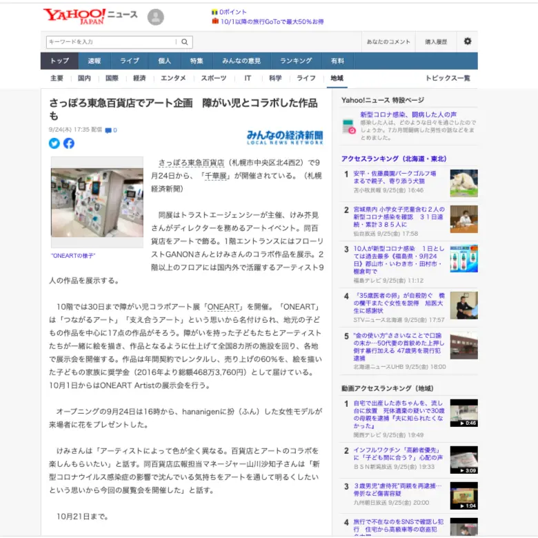 東急千華展、ONEARTが掲載されました! ありがとうございます。